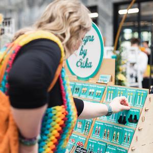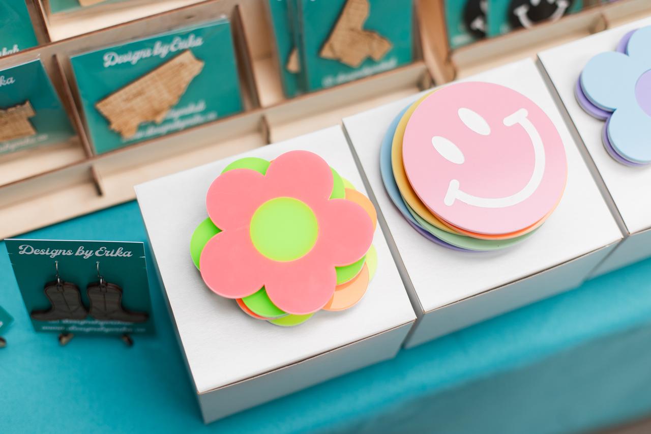 Erika works with materials spanning from specialty wood to acrylic to create whimsical, statement designs.