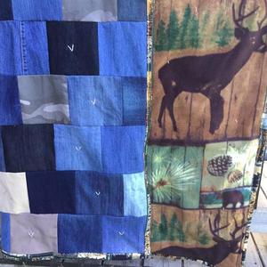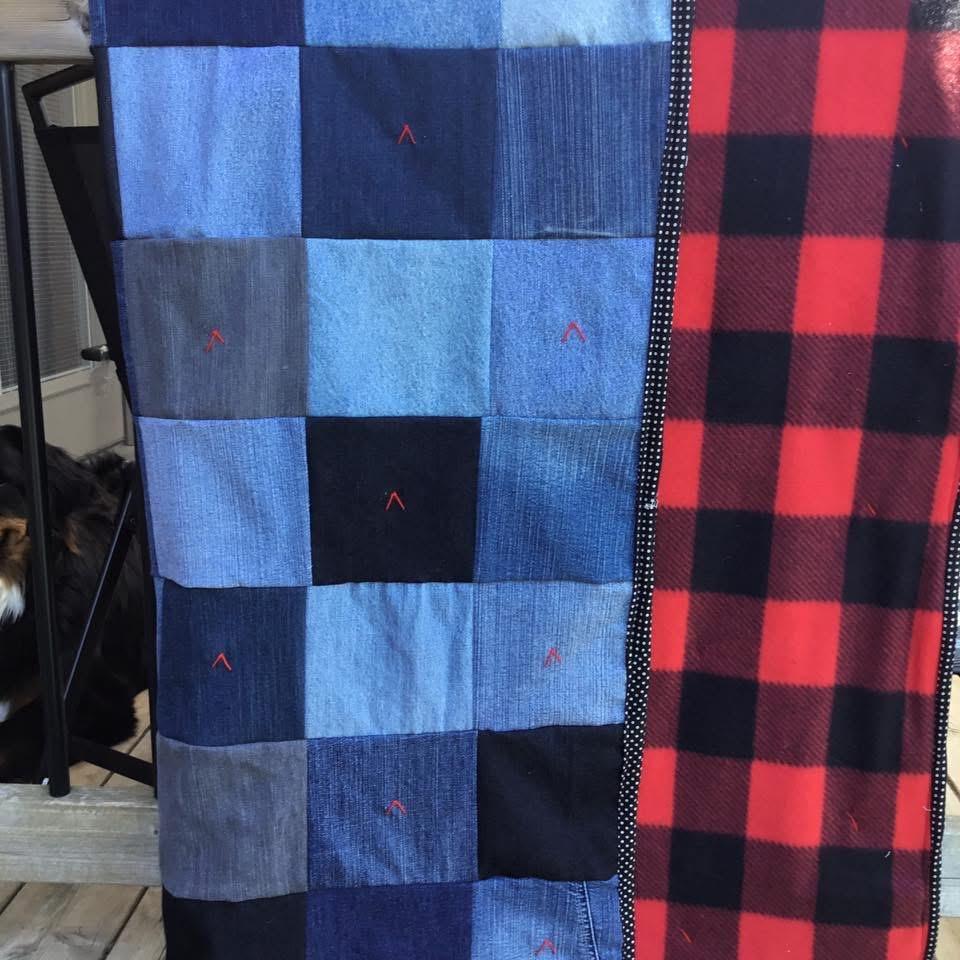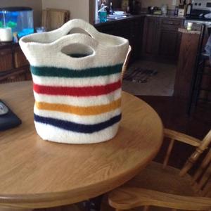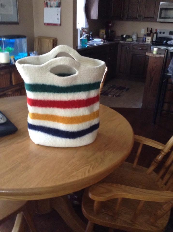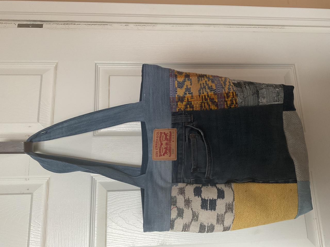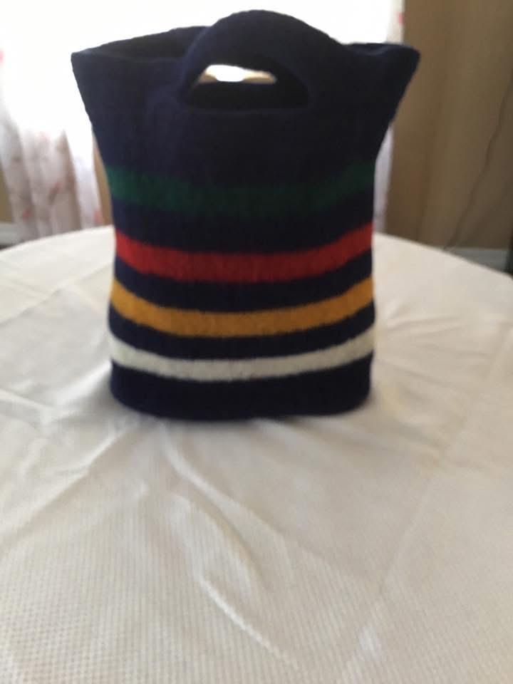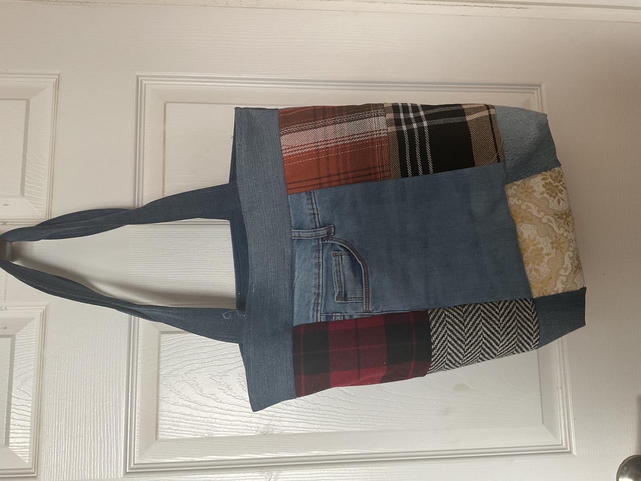 i also make denim tote bags denim aprons and denim blankets from recycled materials or felted remnants and reclycled drapery and upholstery fabrics. I love using recycled products to reduce tossing into landfills. The tote bags are popular with the student crowd as I find they are recycle conscious.
