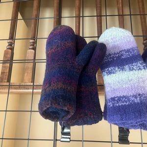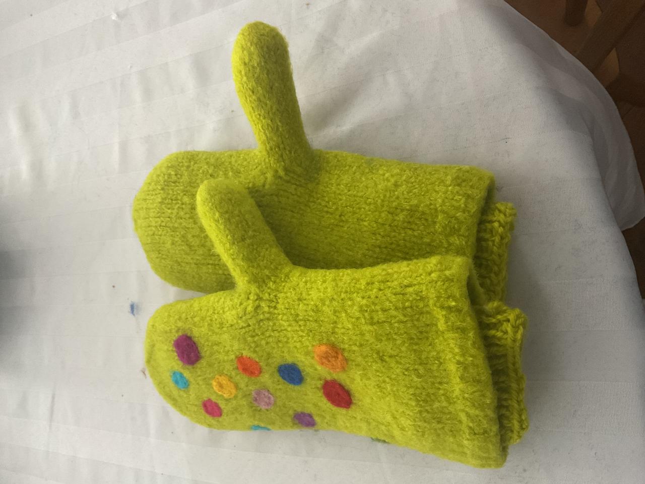 I have been felting mitts headbands slippers and hats for many years ,made from 100%wool then felting in hot water to create dense warm products. Felted mitts are extremely warm and never lose their shape . For many years I made mitts from reclycled sweaters but find these felted mitts are warmer . I put a cuff and lining inside to finish them off