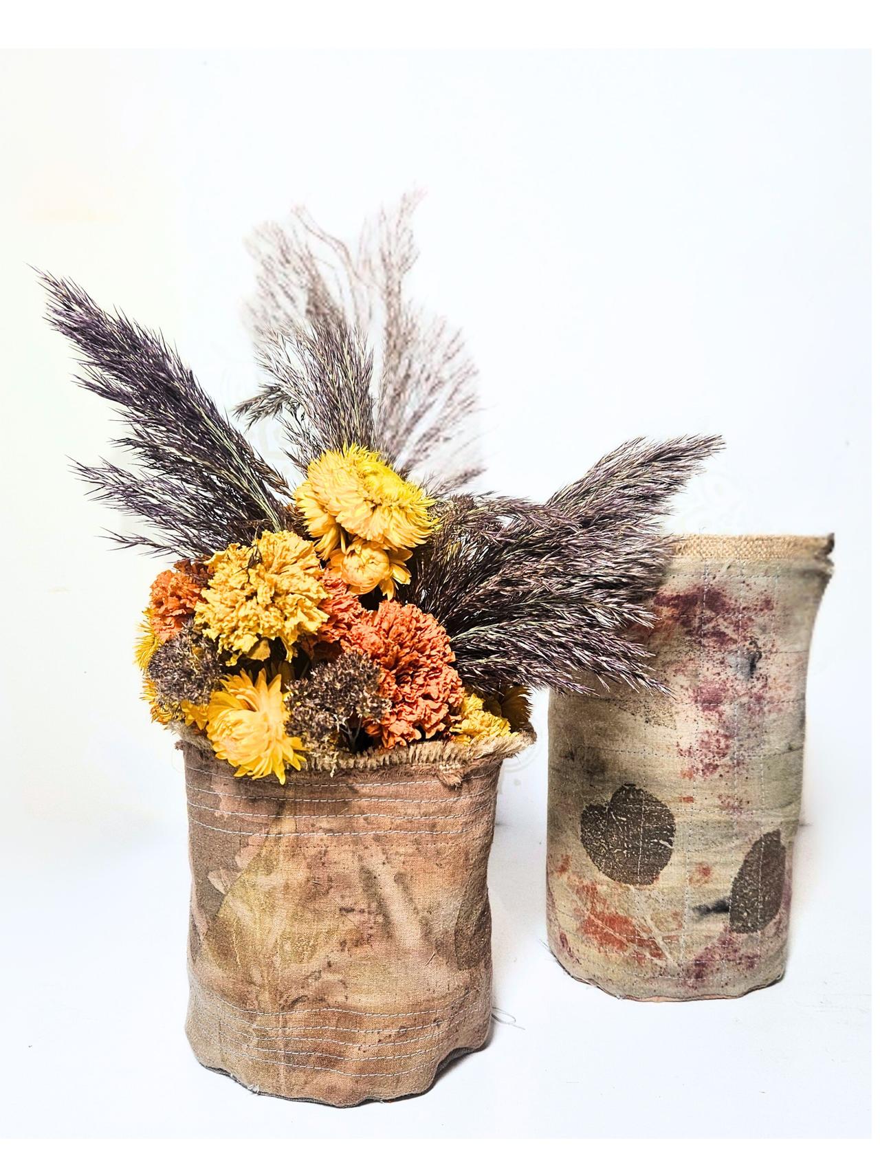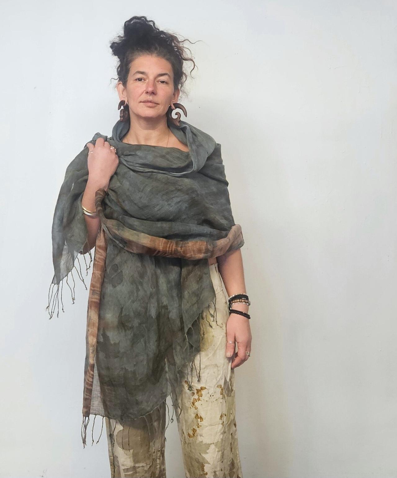 Everything I create begins with raw materials, hemp and organic cotton fabric, cotton cord, which I then dye in small batches using ethically foraged or ethically purchased plants. From these raw material I create, wearables, such as scarves, shawls, & a small line of handcrafted clothing, Yoga & meditation props, to support your practice, Baskets & vessels, to hold any thing your heart desires, and little bundles of carefully dyed fabrics for you to create with.. My line of upcycled clothing, is created using natural fiber discarded clothing, I wash and mend them if needed, and dyed each piece by hand using a variety of natural dye materials.