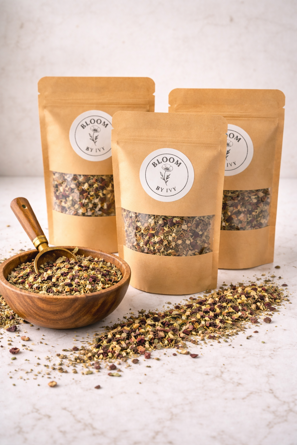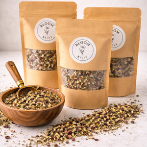 Bloom by Ivy is a small batch herbal tea venture offering thoughtfully crafted loose leaf blends made with organic, ethically sourced herbs. My teas are created with women’s everyday wellness in mind, with a focus on nervous system support, hormone balance, and gentle nourishment through the different seasons of life.