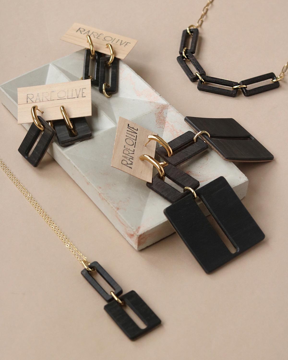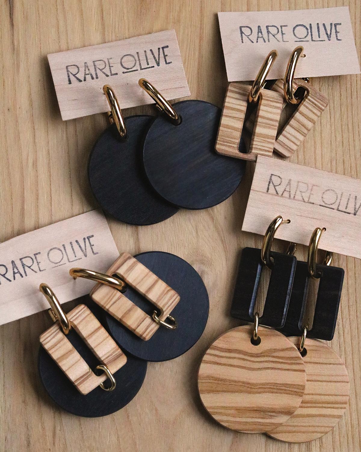 Rare Olive is owned and operated by Guelph maker, Nicole Gagnon. Nicole makes wooden jewellery and accessories that are unique, smartly crafted, and made with hand-selected woods. There is a quality to the craftsmanship that goes into each piece. There is also ingenuity, with styles that are versatile and that can be worn multiple ways.