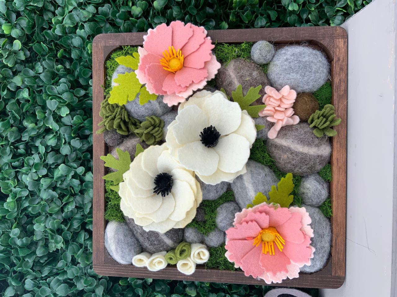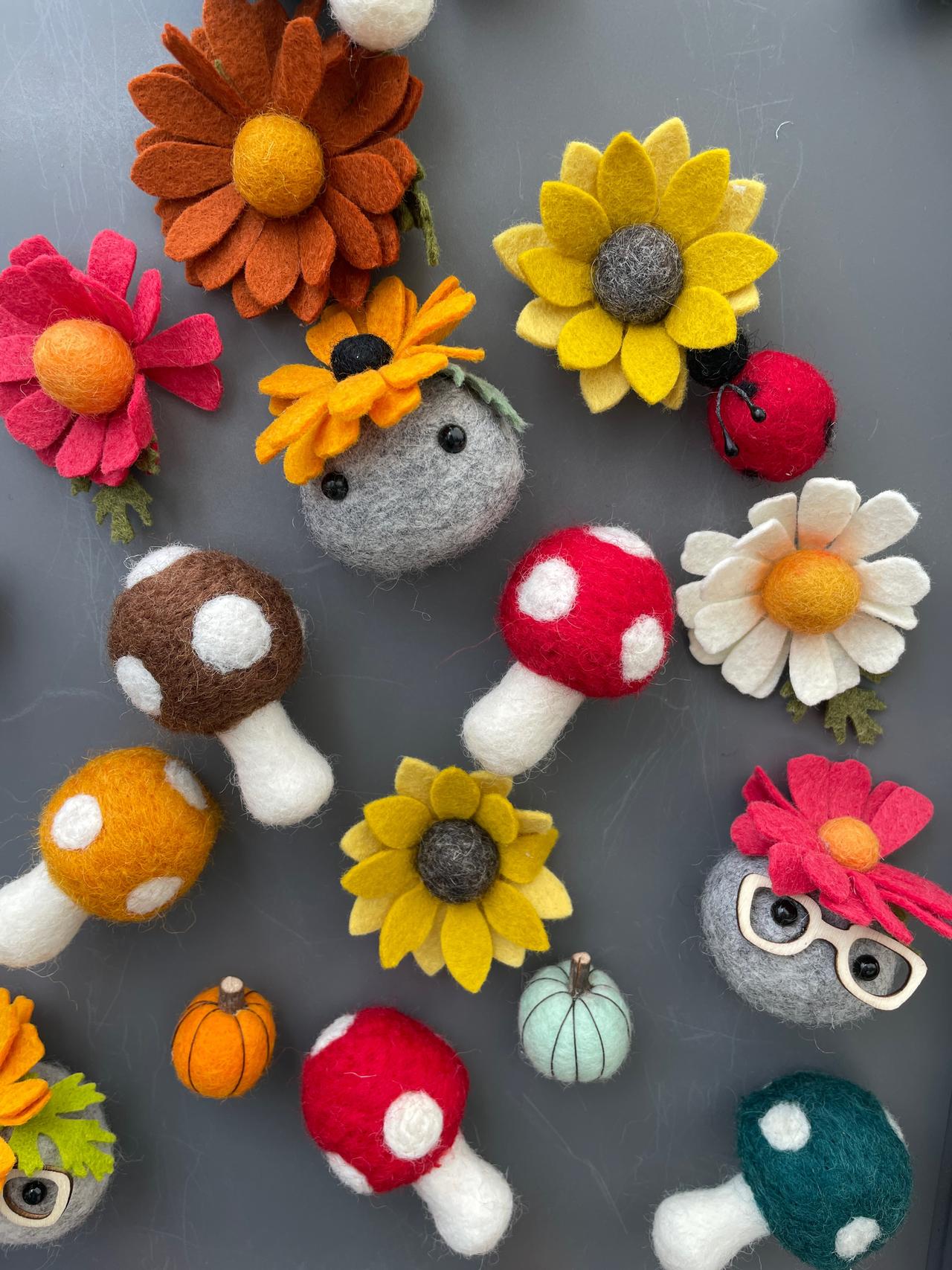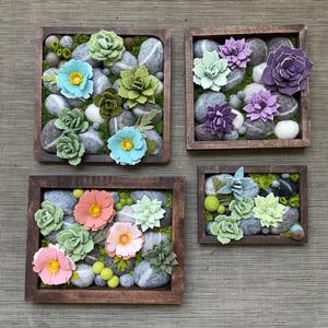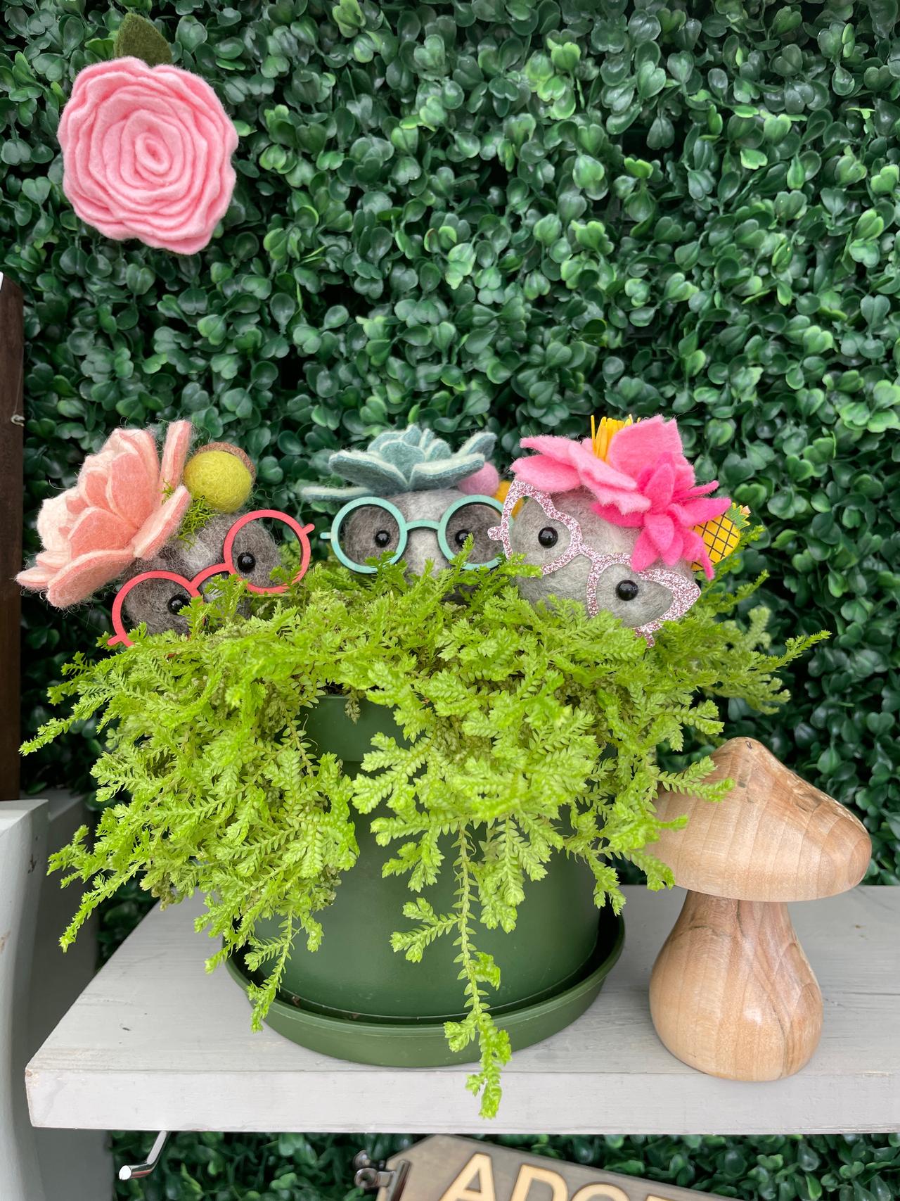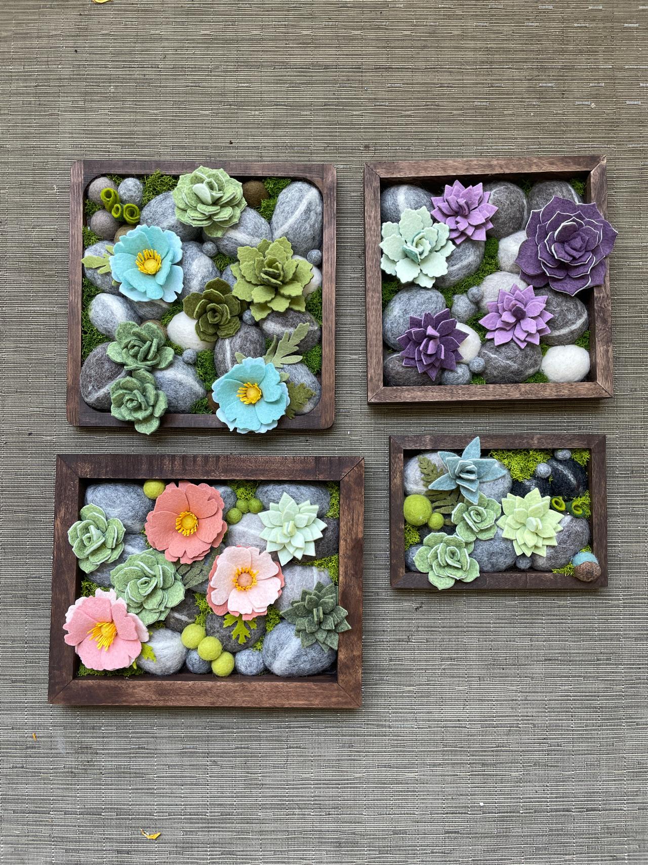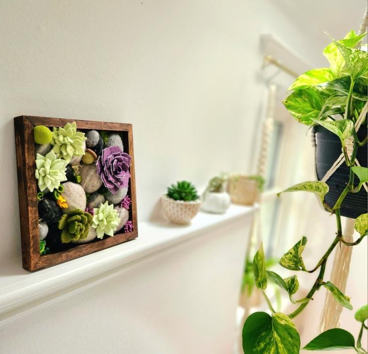 Hello, we are Mike and Suzanne Durst. We graduated from the University of Guelph way back in 2002 and now our daughter is pursuing a degree here. We are both Environmental Scientists during the day. In our spare time, we work in wool and felt to create botanicals and our signature line of Stone Softies. They are made with a solid felted stone with a ton of character and personality. These Stone Softies have "jobs" such as our Vent Clip Stone Softies, which clip into your vehicle vent to freshen your car with a couple of drops of essential oil and "Plant Pals", which come on a galvanized spike and hang out with your houseplants. We handcraft all different species of botanicals including florals and succulents for other items such as hanging vertical gardens, bouquet boxes, pins and brooches and wall hangings.