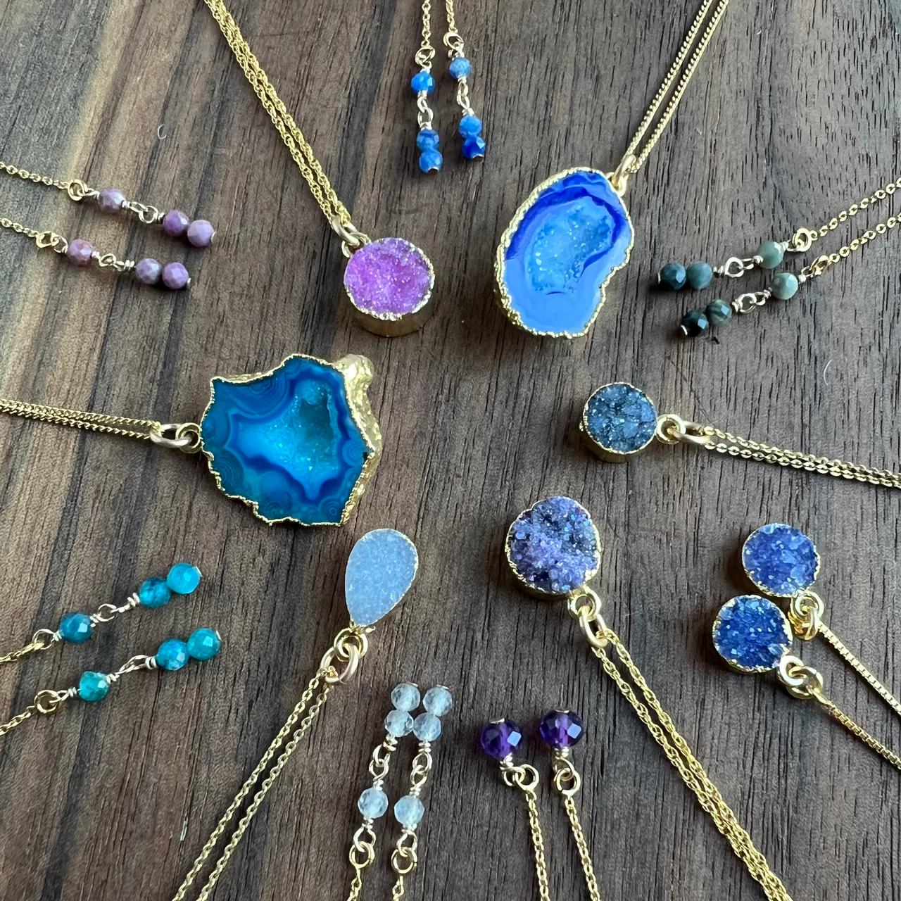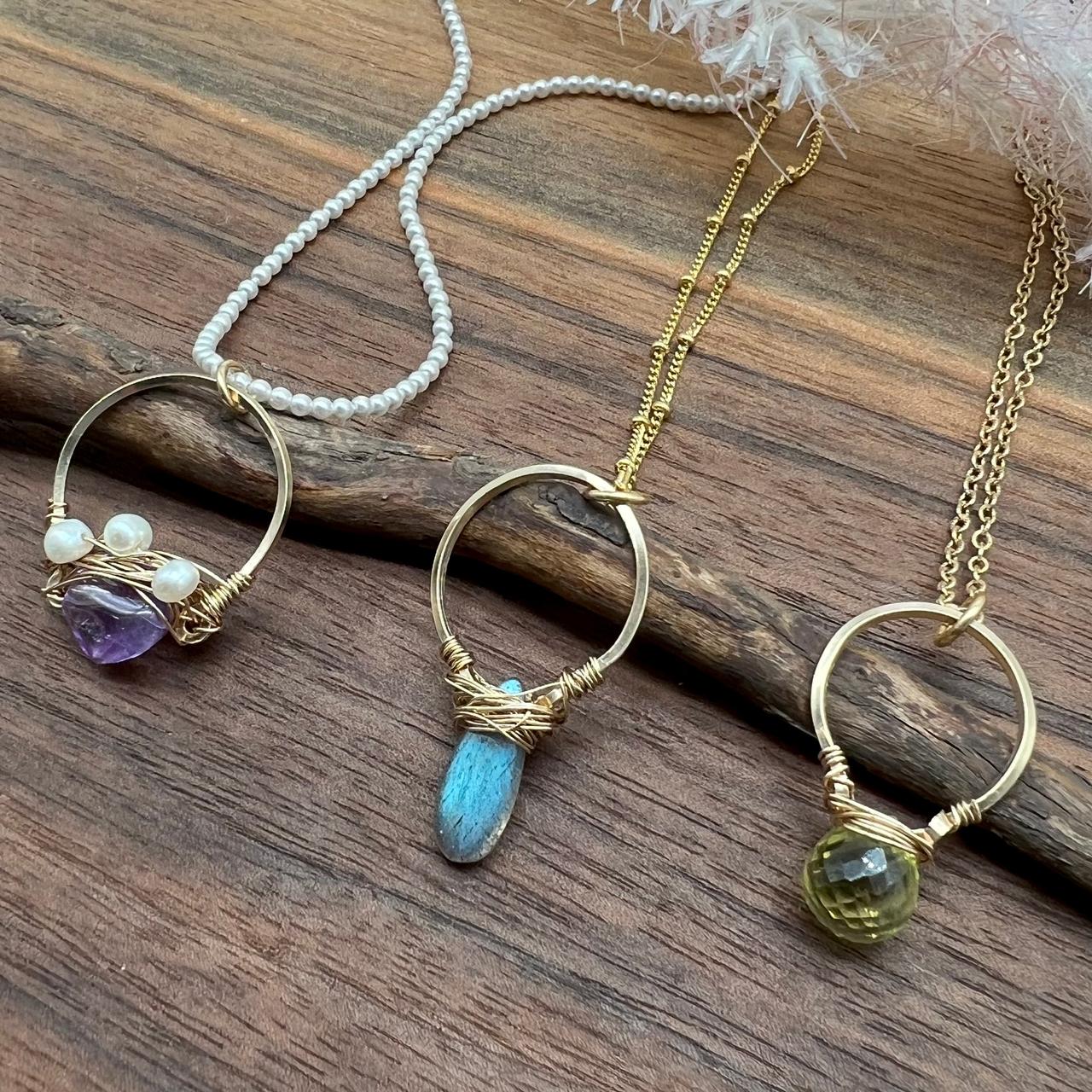 We use sterling silver and 14k gold-filled to ensure quality for our customers.Some of the techniques we use include wire wrapping, wire sculpting, hand stamping, soldering and forging. Some of the new methods include electroforming and combining resin(epoxy) with the wire work.
