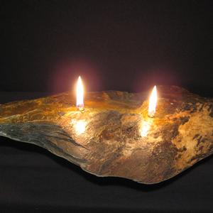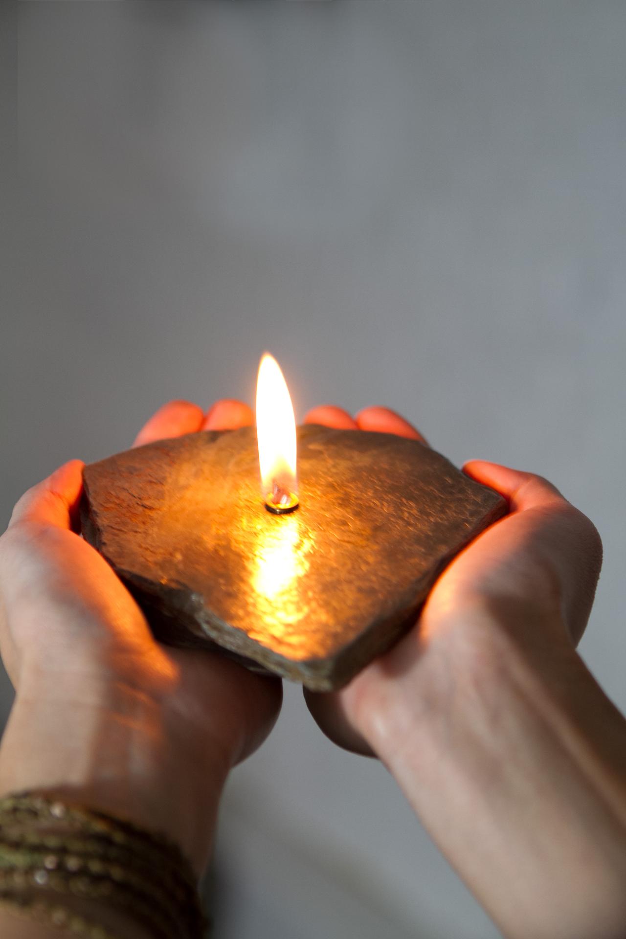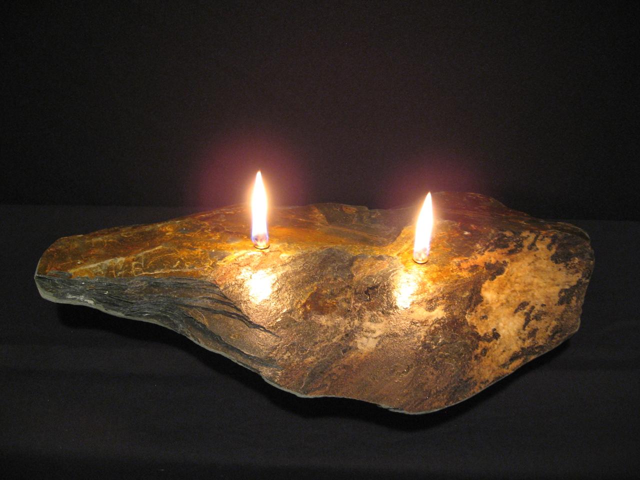 I use unique shaped natural rock and bond a reservoir to the base for the liquid paraffin fuel. The burn time for the candles is 4-6 hours and a refilling kit is included. 90% of my time is spent looking for the rock.