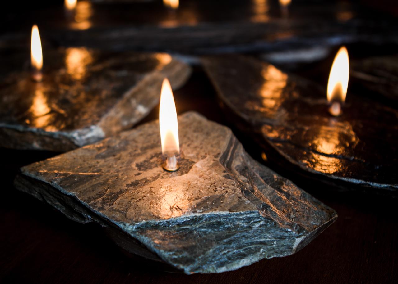 Rock candles by Rocks Afire were inspired by the flickering light of a campfire on summer nights at Georgian Bay.